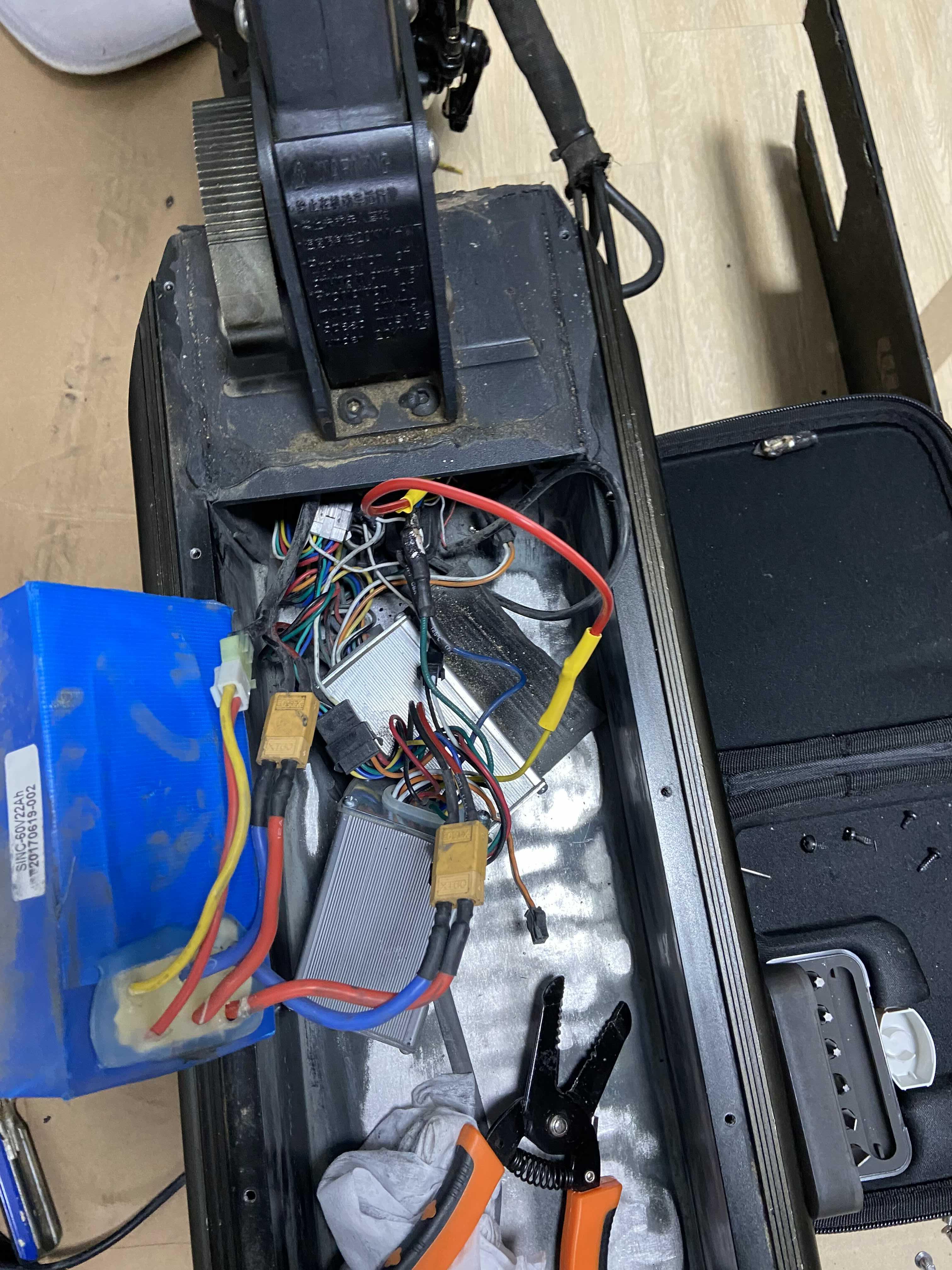 자취방에서 결판을 짓고자 가져와서 작업을 시작 해보았다. 보니까 컨트롤러와 모터로 가는 배선이 실제 사용량을 감당하지 못하는 사이즈로 배선이 붙은것 같다. 그러기때문에 전선이 녹고 합선이 일어나서 작동이 못했던 것이다.